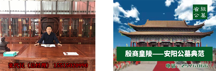 安陽殷商皇陵公墓,2006年2月28日經河南省民政廳批準(豫民文【2006】34號)的合法公墓,國有土地使用證(安國用【51】第1355號),是省重點工程項目。公墓于2008年12月榮獲”河南省十佳陵園”;2009年元月榮獲“安陽誠信之星”;2009年4月榮膺“全犀殯葬行業十佳陵園”稱號,“公墓定位為河南省高端公墓”,“安陽的八寶山”。  公墓坐落于安陽市龍安區,馬投澗鎮郭大岷村村東鳳凰崗上,占地40000余平方米,距市區6公里,交通方便,道路四通八達。  公墓于2006年成立,起步高,選用碑型、碑石都是行業精品,碑石為花崗巖堅硬耐風化,與當地石材完全不同。產品價格分高、中、低三個檔次,滿足不同客戶的需求,同類產品在合法公墓中定價較低,公墓的經營策略是低價入市,讓利客戶,培養市場,公墓每年的下葬率在行業中屬于較高的了,現場參觀一目了然。